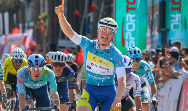 Cumhurbaşkanlığı Türkiye Bisiklet Turu'nun 152.8 kilometrelik Aydın-Marmaris etabını Team Flanderrs-Baloise takımından Tom Crabbe 3.35.33 ile kazandı. Böylece Crabbe üst üste ikinci zaferini elde etmiş oldu.Cumhurbaşkanlığı Türkiye Bisiklet Turu'nun 152.8 kilometrelik Aydın - Marmaris etabını Team Flanders-Baloise takımından Tom Crabbe, 3 saat 35 dakika 33 ile kazanıp üst üste ikinci zaferini elde etti. Crabbe, ilk etapta da kazanmış ve böylece Türkiye Turu'nun 2007 senesinden beri en genç etap galibi olmuştu. TUR'da yarın genel klasman birinciliğini etkileyecek kraliçe etabı olarak adlandırılan 133.7 kilometrelik Marmaris - Kıran tırmanışı koşulacak. Turkuaz mayoyu Team Flanders- Baloise takımından Tom Crabbe giyecek. Marmaris'teki finişte Alpecin-Premier Tech takımından Sente Sentjens, üçüncü ise Burgos Burpellet BH takımından Meksikalı Cesar Macas oldu.TUR'da ilk kez Aydın'dan start verildiÇeşme - Selçuk etabında tekerlek farkıyla dördüncü olan Ramazan Yılmaz'ın bu başarısı Türk Takımları arasında büyük sükse ve moral oldu. 21 yaşındaki Ramazan Yılmaz, Brüksel'de katıldığı pist yarışından sonra ayağının tozuyla Cumhurbaşkanlığı Türkiye Bisiklet Turu'na gelerek pedal basmaya başladı. Ramazan'ın bu sonucu alması 2018'de Marmaris finişinde Ahmet Örken'in 5. oluşundan bu yana en iyi sonuç olarak gösterildi. 157 bisikletçi yarış tarihinde ilk kez Aydın'dan start aldı. Bu yıl Marmaris 28'inci kez TUR rotasında yer alarak erişilmesi kolay olmayan bir finiş etabına daha ev sahipliği yaptı.Turkuaz mayoyu Crabbe giydiDamalı bayrağın sallanması sırasında Aydın Vali Yardımcısı Uğur Kolsuz, Aydın Cumhuriyet Başsavcısı Celal Tekin, Aydın İl Emniyet Müdür Yardımcısı Satılmış Karakaya, Türkiye Bisiklet Federasyonu Başkanı Emin Müftüoğlu, Türkiye Bisiklet Federasyonu Asbaşkanı Metin Cengiz, Türkiye Bisiklet Federasyonu Genel Sekreteri Mehmet Sedat Fırat, hazır bulundu. 12.46'da gerçek start öncesi Çeşme - Selçuk etabının birincisi olan Tom Crabbe'nin Turkuaz mayoyu giymesinden sonra pedallar dönmeye başladı.Kaan Özkalbim puanı kaptıKaçış grubundaki bisikletçi Kaan Özkalbim beyaz mayoyu hedefliyor. Cumhurbaşkanlığı Bisiklet Turu'na dördüncü defa katıldığını söyleyen Spor Toto takımının sporcusu Kaan Özkalbim bu sabahki yarış öncesinde "Tek hedefim beyaz mayo için puan almak. Bu yüzden kaçış grubunu kovalayacağım" dedi. İzmirli bisikletçi bunu başardı ve Türkiye Güzellikleri sprint çizgisini üçüncü sırada geçti.Dördüncülük Ramazan'ı kesmediRamazan Yılmaz, dün 4. olarak, Ahmet Örken'in 2018'de Marmaris'te, burada, 5. gelmesinden bu yana TUR'Un bir etabında ilk 5'e giren ilk Türk bisikletçi oldu. Konya Büyükşehir Belediyesi sporcusu "Bu derece benim için yeterli değil, tek isteğim bir etabı kazanmak" dedi.Tom Crabbe: "Bu zaferin keyfini çıkaracağım"61. Cumhurbaşkanlığı Bisiklet Turu'nda ilk günün galibi Belçikalı sporcu Tom Crabbe, Aydın-Marmaris etabını da kazanarak duble yaptı. Böylesine bir başarı kazandığı içi çok mutlu olduğunu söyleyen Team Flanders-Baloise sporcusui "Annem ve babam da Marmaris'te. Hem tatil yapmak hem de yarışı seyretmek için buradalar. 20 yaşında böylesine bir yarış kazandığım için çok mutluyum. Aileme de bu gururu yaşattığım için ayrıca sevinçliyim. Bugünkü etabın daha zor olacağını biliyordum. Geriden geldim ama öndekileri yakalamayı başardım. Bu akşam takım arkadaşlarımla bu zaferi kutlamak çok keyifli olacak. Belçika'daki yarışlarda olduğu gibi burada da kazanmak kendime olan güvenimi artırıyor" dedi.Crabbe, Türkiye Turu'nda birçok etap zaferine imza atmış olan Mark Cavendish, Sam Bennet ve Andre Griepel gibi isimleri geçme hedefinin olup olmadığı sorusuna ise, "Burada iki etap kazandım, diğerlerini de kazanmalıyım diye kendimi strese sokmak istemiyorum. Turkuaz Mayo'yu taşımaktan dolayı çok mutluyum" ifadelerini kullandı.Gözler Kraliçe etaptaCumhurbaşkanlığı Türkiye Bisiklet Turu'nun 3. gününde Marmaris - Kıran arasında 133.7 kilometrelik tırmanış etabı koşulacak. Sprinterlerin pek hoşlanmadığı, ancak tırmanış sporcuların klasını ve dayanıklılığını ortaya koyacak bu kraliçe etabını kazanan sporcu, Genel Klasman birinciliği yolunda önemli bir zafer elde etmiş olacak.