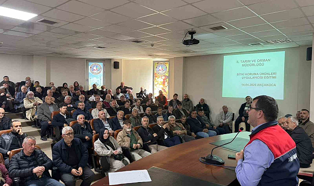 Düzce İl Tarım ve Orman Müdürlüğü koordinesinde bitkisel üretim yapan üreticilere yönelik "Bitki Koruma Ürünleri Uygulama Belgesi ve B-Reçete Eğitimi" düzenlendi.Akçakoca İlçe Tarım ve Orman Müdürlüğü tarafından gerçekleştirilen eğitim programında; bitki koruma ürünlerinin doğru ve etkin kullanımı, zararlılarla mücadele yöntemleri, uygulama teknikleri, insan sağlığı ve çevre güvenliği konuları ele alındı. Ayrıca ilgili mevzuat kapsamında üreticilerin görev ve sorumlulukları hakkında kapsamlı bilgilendirmeler yapıldı. Eğitimde, bilinçsiz ve yanlış pestisit kullanımının ürünlerde kalıntı sorunlarına yol açabileceğine dikkat çekilerek, doğru ilaçlama zamanı, uygun dozaj ve doğru ürün seçiminin önemi vurgulandı.Program kapsamında üreticilerin soruları yanıtlanırken, sürdürülebilir tarım uygulamalarının yaygınlaştırılması ve bilinçli üretimin artırılmasının gerekliliği üzerinde duruldu.