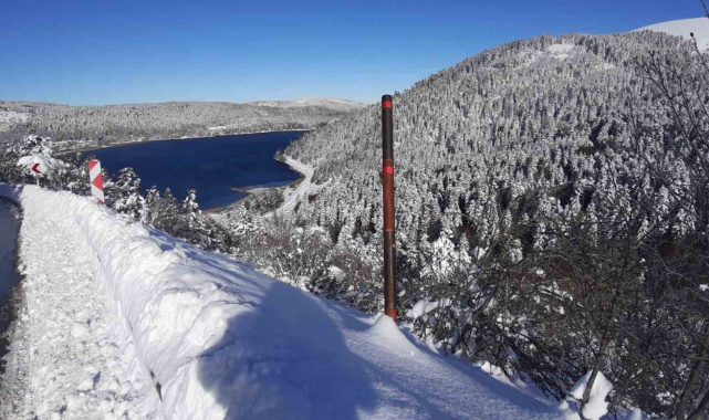 Beyaza bürünen Abant'ta kartpostallık manzara: Kar kalınlığı 1 metreyi buldu