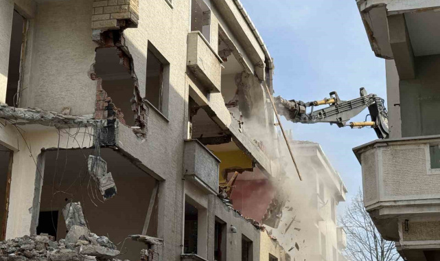 Büyükçekmece Belediyesi desteğiyle ilçede depremde yıkılma riski bulunan 5 blok 39 bağımsız bölümden oluşan binaların yıkım çalışmaları başladı.