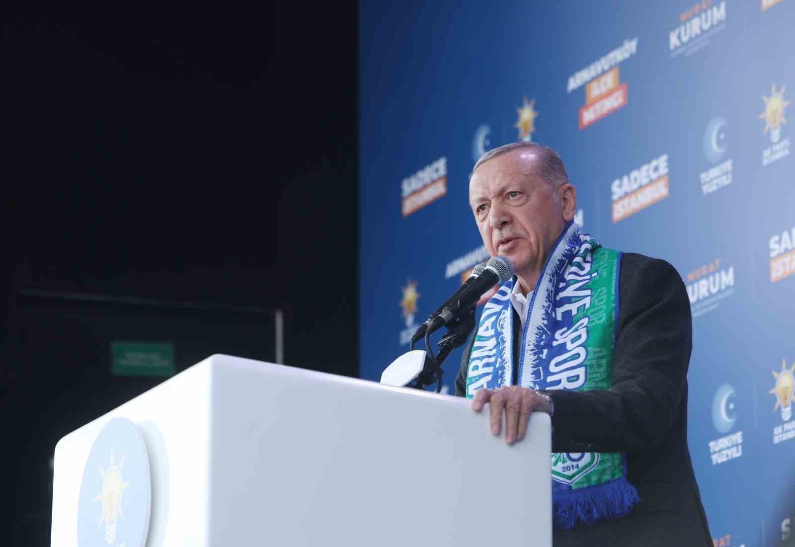 Cumhurbaşkanı Recep Tayyip Erdoğan, Arnavutköy 15 Temmuz Şehitler Meydanı'nda düzenlenen mitingde açıklamalarda bulundu. Cumhurbaşkanı Erdoğan, "İstanbul'un CHP'nin algı belediyeciliği ile bir 5 yıl daha kaybetmeye artık takatinin kalmadığını örnekleriyle anlatacağız" dedi. Erdoğan, "İstanbul'a büyükşehir belediye başkan adayı olarak gönderdik. İşi bileni gönderdik. İnanıyorum ki, yarın akşam Murat kardeşimi tercih ettiğimiz anda pazartesi