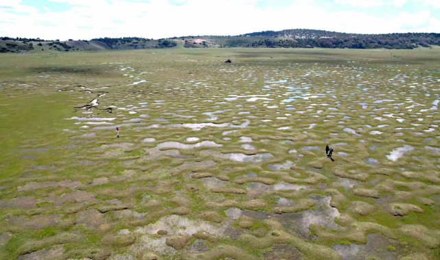 Sakarya'nın Taraklı ilçesinde bulunan Karagöl Yaylası, havadan çekilen görüntülerle doğal güzelliği ve jeomorfolojik yapısıyla hayran bıraktı. Bin 100 metre rakımda, 567 hektarlık geniş bir alanı kaplayan yayla; el değmemiş doğası, zengin bitki örtüsü ve kıvrımlı su yataklarıyla dikkat çekiyor.Sakarya'nın Taraklı ilçesinde yer alan ve bin 100 metre rakıma sahip Karagöl Yaylası, şehrin en büyük yaylalarından biri olma özelliğini taşıyor. Şehir merkezine yaklaşık 100 kilometre uzaklıktaki bölge, köknar, kayın ve çam ağaçlarıyla kaplı yoğun ormanlarla çevrili bulunuyor. 567 hektarlık geniş alana sahip olan bölge, bol oksijenli havası ve soğuk içme sularıyla adeta doğal bir terapi merkezi niteliği taşıyor. Karstik özellikleri ve düdenleriyle öne çıkan alan, ilkbaharda suyla kaplanarak eşsiz bir manzara sunuyor. Adını, yağışların ardından düdenlerde biriken suların uzaktan bakıldığında göl görünümü oluşturmasından alan Karagöl, bu özelliğiyle dikkat çekiyor. Havadan kaydedilen görüntülerde, karstik oluşumların meydana getirdiği çöküntüler ve yıl boyunca su akışıyla şekillenen menderesler net şekilde gözlemlendi. Toprak yüzeyindeki dalgalı desenler ve kıvrılarak ilerleyen su kanalları, bölgenin jeolojik karakterini ortaya koyarak benzersiz bir görünüm oluşturuyor. Doğa yürüyüşleri, yayla turizmi ve fotoğraf safarileri için uygun şartlar sunan bölgede geleneksel yaşam da sürdürülüyor. Karagöl Yaylası; doğal peyzajı, zengin florası ve jeomorfolojik özellikleriyle hem bilimsel çalışmalar hem de doğa turizmi açısından önemli bir potansiyel barındırıyor."Sakaryalıyım ama ilk defa buraya geldim, çok beğendim"Yaylaya ilk defa geldiğini aktaran Sinem İsabetli, "Karagöl Yaylası'na ilk defa geldim ve fotoğraflardaki gibi güzelmiş. Bu menderesler yılın bazı zamanlarında ortaya çıkıyormuş ve onu görmek için geldik. Gerçekten hoşumuza gitti, doğa tutkunlarının görmesi gereken bir yer" derken Merve Bingül, "Sakaryalıyım ama ilk defa buraya geldim, çok beğendim. Herkesin özellikle doğayı seven insanların gelip görmesi gerektiğini düşünüyorum. Nisan sonu Mayıs ortası sadece bu görüntü oluşuyormuş, bu sürede görmek isteyenlerin gelmesi gerekiyor" dedi.
