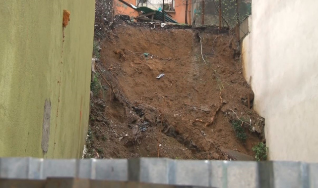 İstanbul Eyüpsultan'da etkili olan yağmur sonrası istinat duvarının çöktüğü anlar cep telefonu kamerasına yansıdı.