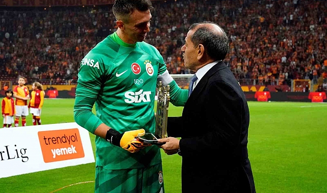 Galatasaray'ın Uruguaylı file bekçisi Fernando Muslera, Hatayspor maçıyla birlikte sarı-kırmızılılarla 500. resmi karşılaşmasına çıktı. Mücadele öncesinde Galatasaray Başkanı Dursun Özbek, Muslera'ya plaket takdim etti.