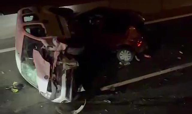 Hafif ticari araç, lastiği patlayan otomobile çarparak yan yattı: 2 çocuk yaralı