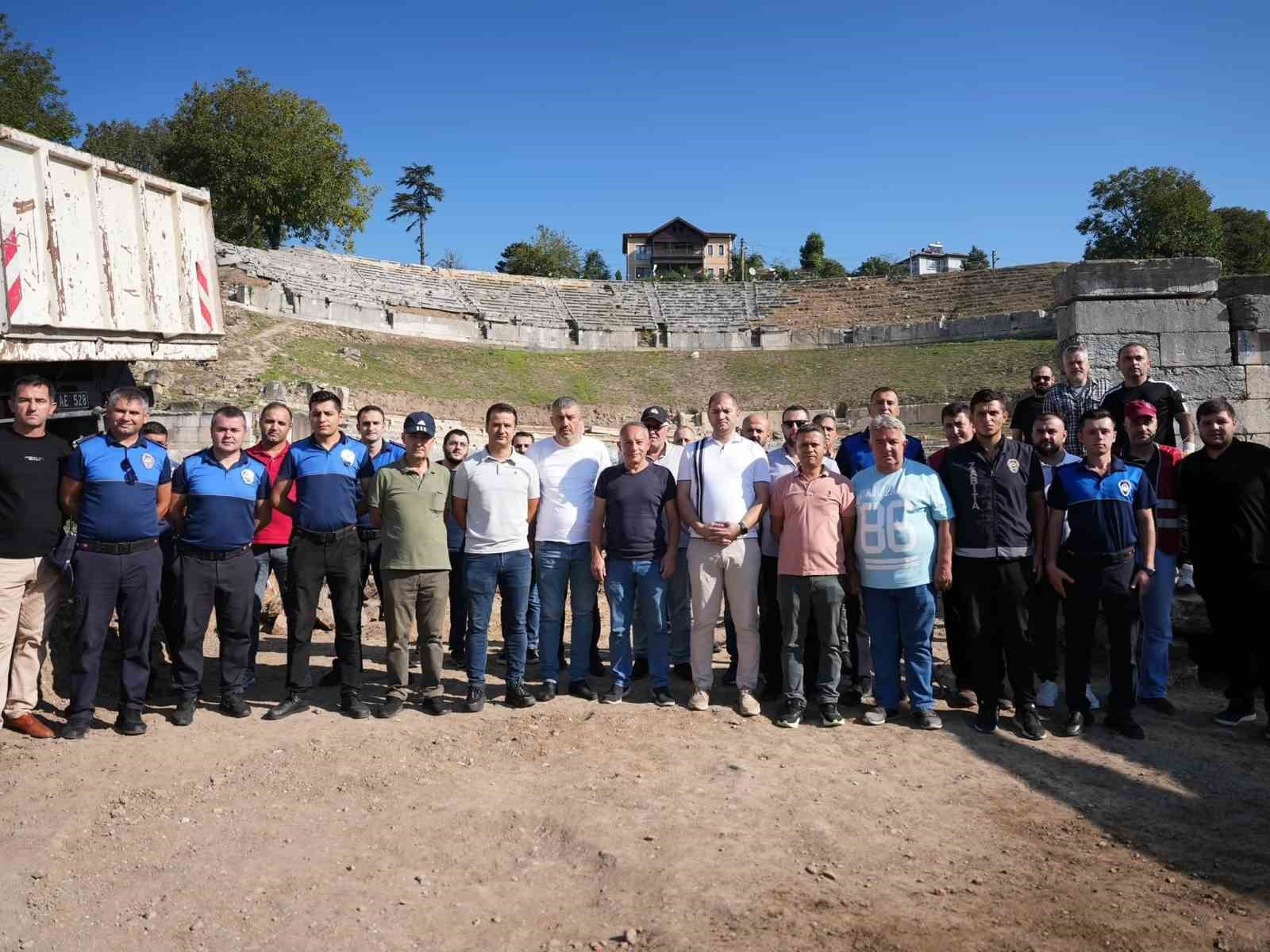 Batı Karadeniz bölgesinin tek antik kenti Prusias Ad Hypium antik kentinde kazı çalışmalarına bu sefer Düzce Belediyesi Zabıta Müdürlüğü ekipleri katılım sağlayarak, tarihi dokunuşa el attı.