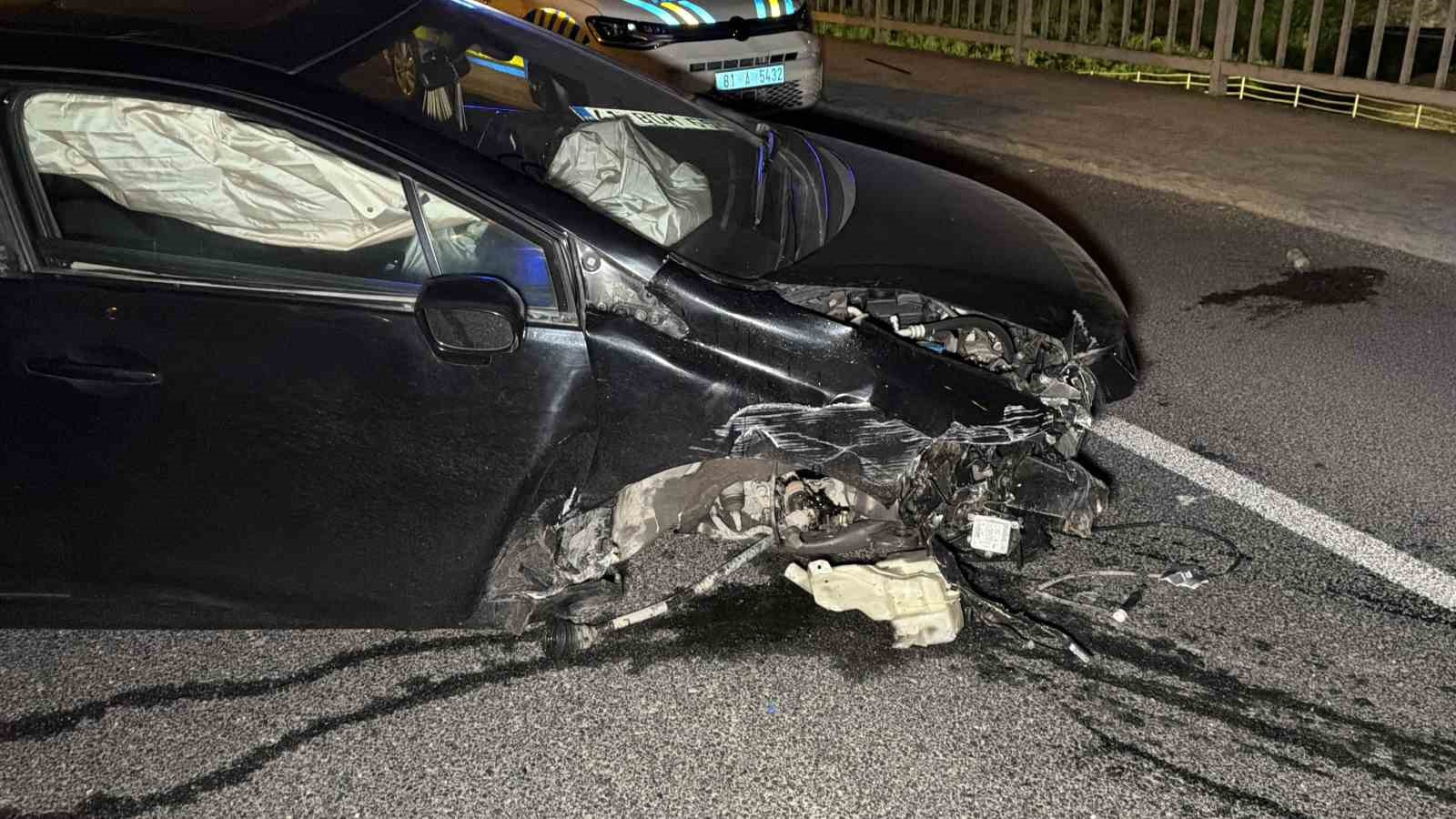 Düzce'de köprü korkuluklarına çarpan otomobilde bulunan 3 kişi yaralanarak hastaneye kaldırıldı.