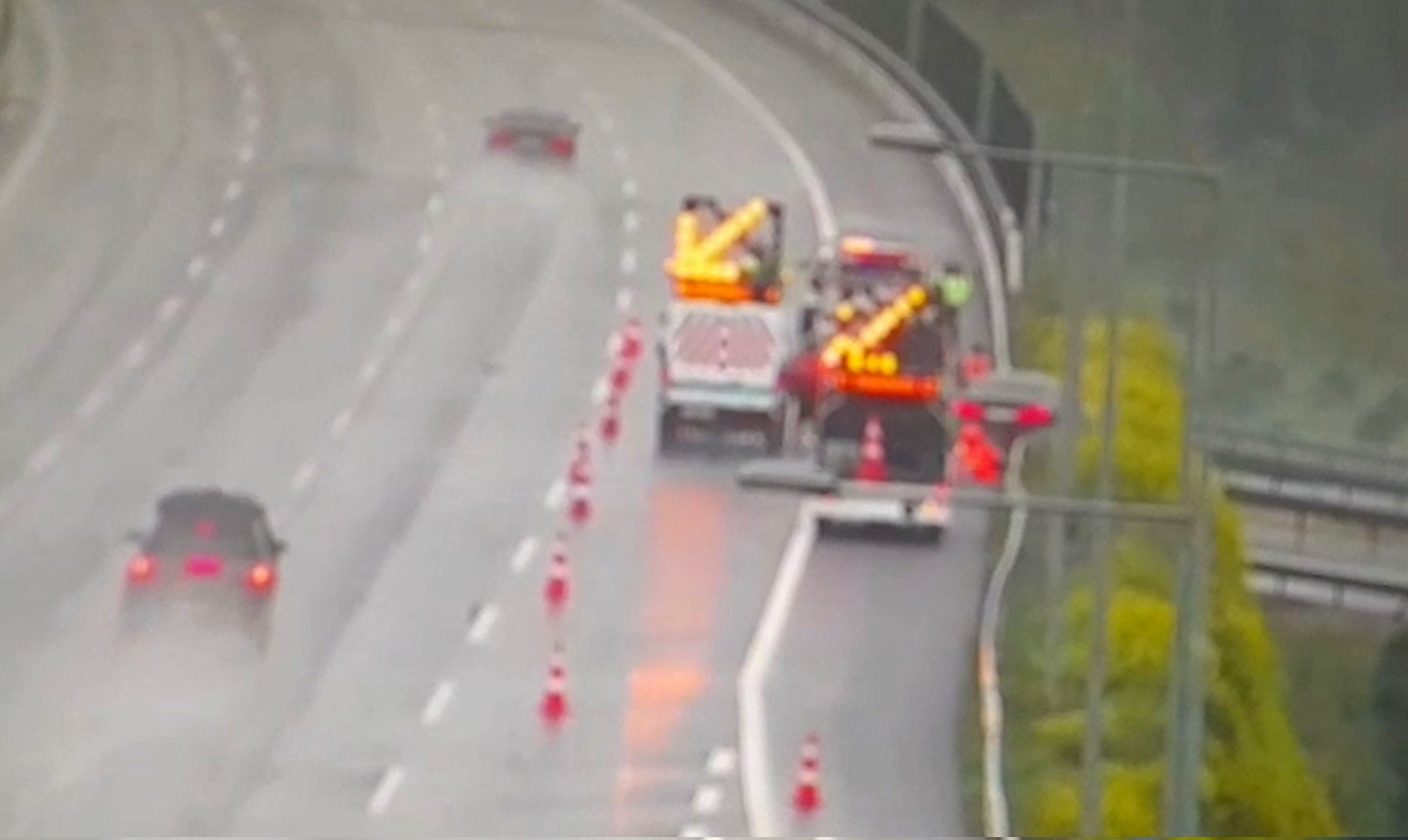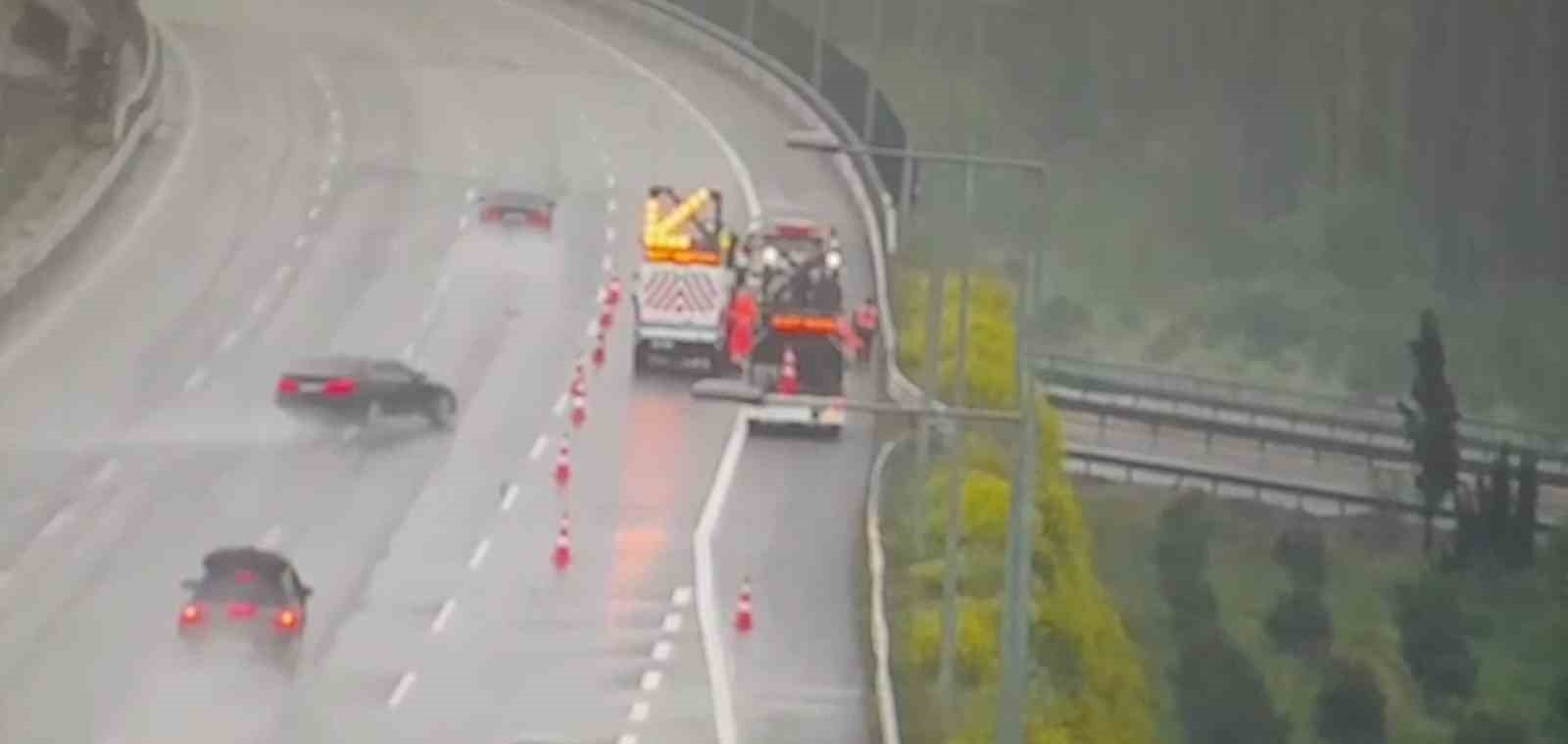 Önce bariyere, ardından otoyol çalışanlarına çarptı: O anlar kamerada