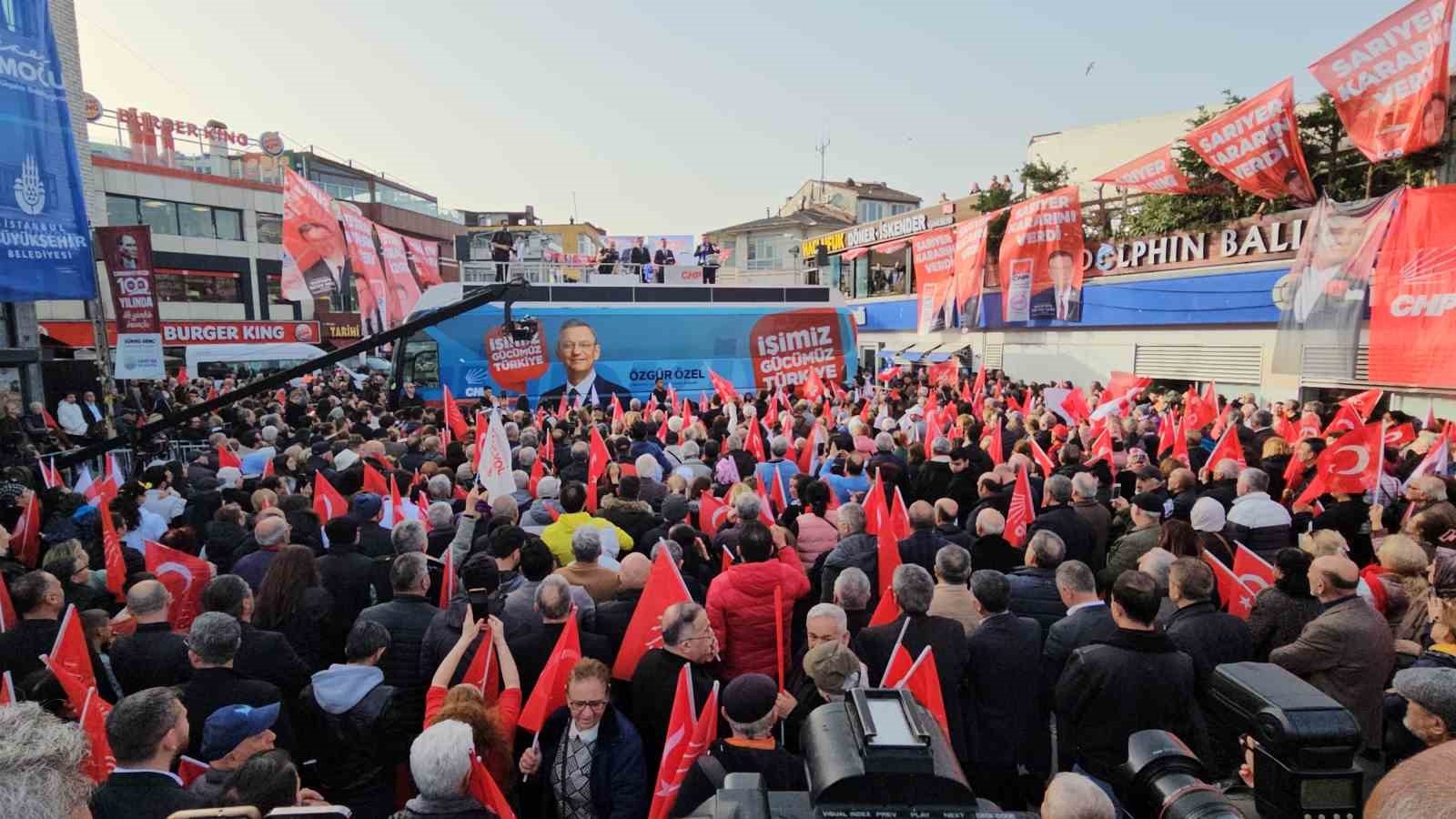 Sarıyer'de halka seslenen CHP Genel Başkanı Özgür Özel, "Şu anda Şükrü Genç'e buradan son çağrımdır. Aradım, yapma büyüğümüzsün dedim. Gel Genel Merkez'de birlikte çalışalım dedim. Şimdi iş geldi son dört güne. Kapıda AK Parti tehlikesi. Eğer gerçekten bu partiye gönül verdiysen bugün yarın açıklamanı yaparsın. Çekilirsin. Pazartesi günü gelirim rozetini kendim takarım. Biz kazandıktan sonra partiye dönmek istersin kusura bakma affedemeyiz" dedi.CHP Genel Başkanı Özgür Özel seçim çalışmaları kapsamında Sarıyerlilere seslendi. CHP yönetimi ile anlaşamayıp Bağımsız Sarıyer Belediye Başkan Adayı olan Şükrü Genç için, "Bir kişinin partili olduğu göreve geldiği gün değil görevden gittiği gün belli olur" diye konuşan Özgür Özel, "Şimdi bazıları diyor ki ben yıllarca bu partinin adayı oldum. Çok iyi. Hadi o zaman gençleşme zamanı. Hadi o zaman değişim zamanı. Hadi bakalım. Sen tecrübeni başka tarafa akıt. Gel burada yeni bir heyecanı başlatalım. Olmaz. Ben partinin adayıysam, partideyim. Yoksa karşıdayım. Ben rozeti çıkarırım. Çekmeceye atarım. Bir de diyormuş ki ben de partiliyim. Sonra partiye geri gelirim. Bakın genel başkan olarak söylüyorum. Ben aday olayım. Seçilirsem geri geleyim. Bak şu anda CHP'nin adayının karşısında adaylaştığınız için AK Parti'nin gelme tehlikesi var. Hem bu riski oluşturacaksın hem günü gelince partiye döneceğim diyeceksin, yok öyle. Şu anda Şükrü Genç'e buradan son çağrımdır. Partinin Genel Başkanı olarak geçmişte aradım yapma başkanım dedim, aradım, yapma büyüğümüzsün dedim. Gel Genel Merkez'de birlikte çalışalım dedim. Şimdi iş geldi son dört güne. Kapıda AK Parti tehlikesi. Kazanma ihtimali sıfır. Oktay Aksu kazanıyor. Eğer gerçekten bu partiye gönül verdiysen bugün yarın açıklamanı yaparsın. Çekilirsin. Pazartesi günü gelirim. rozetimi kendim takarım. Yok şimdi çekilmedin. Pazarı getirdin. Bize korkulu rüyayı gördürttün. Pazar günü seçimi kazandık. Ondan sonra döneyim. Yok. Affedemeyiz. Affedemeyiz, affedemeyiz" dedi.
