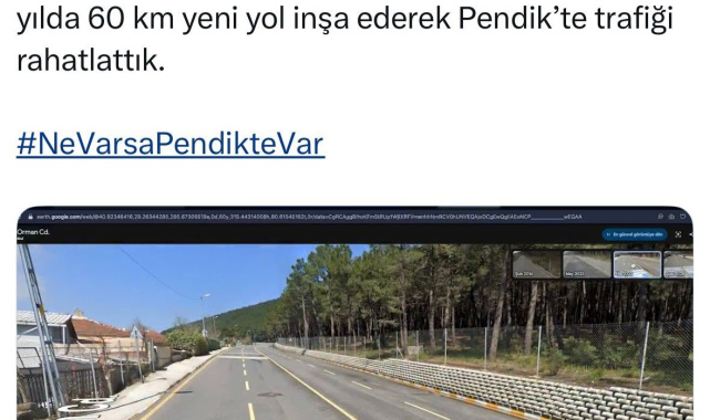 Pendik Belediye Başkanı Ahmet Cin, Mansur Yavaş'ın "Yol yapmak trafiği rahatlatır mı? Yapay zekâya sorun" sözlerine çarpıcı bir çıkışla yanıt verdi. Başkan Cin, "Bazıları yapay zekâya soradursun, biz 6 buçuk yılda 60 kilometre yeni yol inşa ederek Pendik'te trafiği rahatlattık" dedi. Öte yandan yapılan yol çalışmaları ve etkisi Google Maps dijital haritasına da yansıdı.