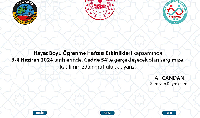 çıkmaya hazır.Serdivan Belediyesi’nden yapılan açıklamada; Hayat Boyu Öğrenme Haftası etkinlikleri