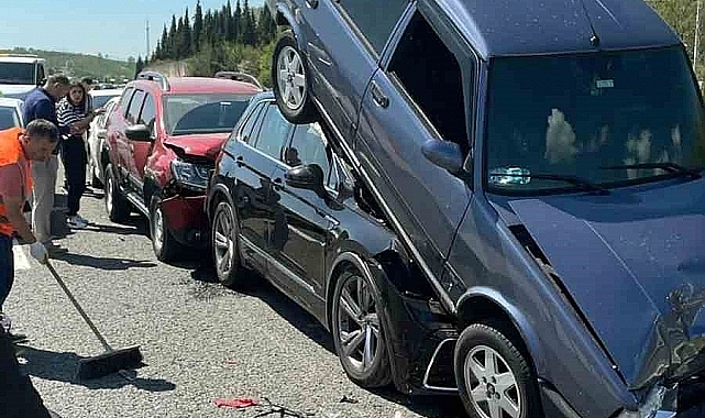 Kazada, bir aracın aniden hız kesmesinin etkisiyle çok sayıda araç birbirine girdi. Olay yerine sağlık ve polis ekipleri sevk edildi. Yaralıların tedavisi için ekipler harekete geçti.Kazanın en dikkat çekici noktalarından biri, öndeki araçlardan birinin arkadan gelen aracın ön kaputuna çıkmasıydı. Bu etkileyici kaza sonrası, trafikte uzun kuyruklar oluştu ve araçların kaldırılması için çalışmalar devam ediyor.