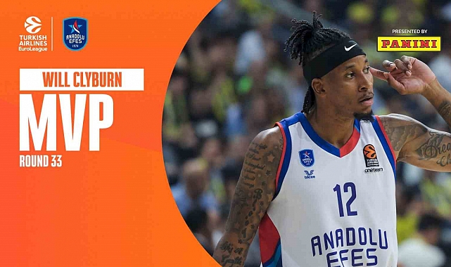 THY Euroleague'de 33. haftanın en değerli oyuncusu (MVP) A. Efes'in ABD'li basketbolcusu Will Clyburn oldu.THY Euroleague'de 33. haftanın sona ermesinin ardından haftanın en değerli oyuncusu da belli oldu. Euroleague'in resmi internet sitesinden yapılan açıklamada, A. Efes'in deplasmanda Fenerbahçe Beko'yu 82-80'lik skorla mağlup ettiği karşılaşmada takımın galibiyetinde büyük rol oynayan Will Clyburn'ün haftanın MVP'si seçildiği belirtildi. Clyburn müsabakada 21 sayı, 5 ribaund, 4 asist ve 1 top çalma ile oynadı ve 28 verimlilik puanı aldı.33 yaşındaki basketbolcu bu sezon ilk, toplamda 6. kez haftanın MVP'si oldu.